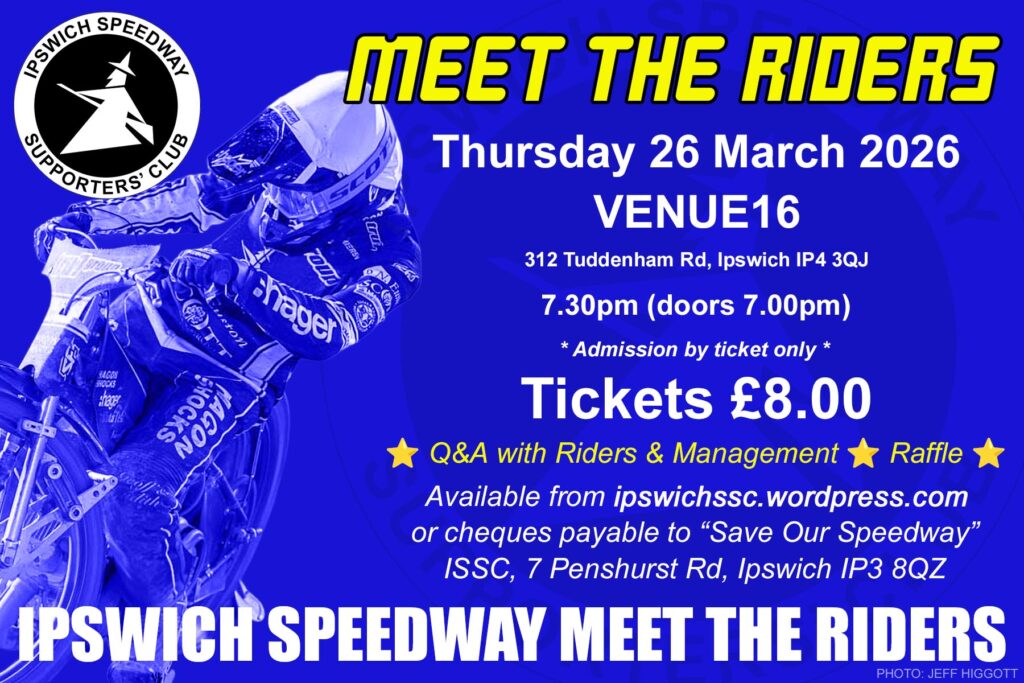 Limited tickets remain for Ipswich Speedway’s Meet the Riders event at Venue16 on March 23 (7.30pm).